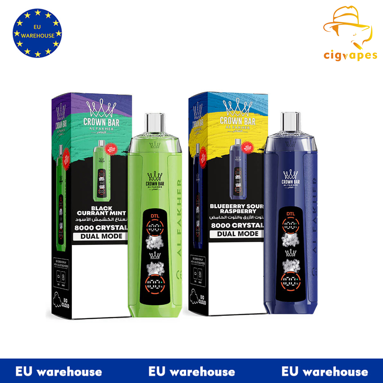 EU Warehouse Al Fakher Crown Bar 8000 Pro Puffs 8k Crystal Disposable Vape